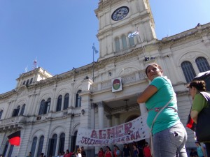 En la movilización que se realizó este jueves a Casa de Gobierno, la asamblea departamental Paraná de la Asociación Gremial del Magisterio de Entre Ríos