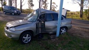 Una mujer al mando de un automóvil Chevrolet Corsa, Dominio IUF 012, protagonizó un accidente que le provocó lesiones graves y obligó a su inmediato