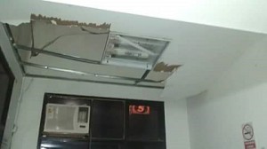 Parte de la mampostería del techo de la oficina de informes de la Terminal de Ómnibus de Concordia se desprendió y cayó sobre el mobiliario.