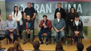En Lucas González durante el encuentro provincial de «Entre Ríos Cambia», encabezado por sus líderes, el pre-candidato Pedro Galimberti y Dario Schneider, intendente de Crespo,