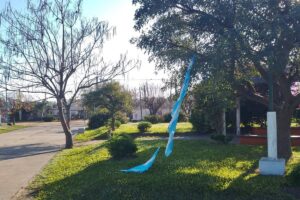 En la avenida principal de La Criolla, un hecho de vandalismo incluyó roturas de adornos y robo de banderas, que estaban colocadas de cara a