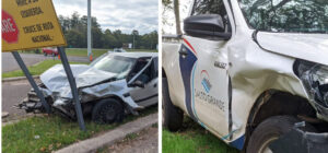 Dos vehículos con patente uruguaya protagonizaron un violento accidente en la zona del acceso a las playas del lago de Salto Grande. Tres personas resultaron