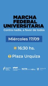 La Regional Concordia de la Universidad Tecnológica Nacional (UTN) convocó a marchar este miércoles en adhesión a la Marcha Federal Universitaria que se manifestará en