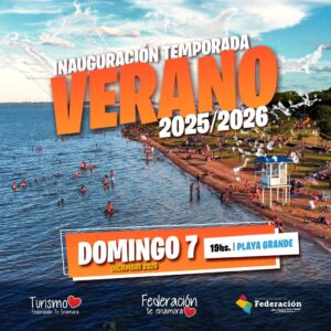 La ciudad de Federación este domingo 7 de diciembre, a partir de las 19 en Playa Grande dará la bienvenida a la temporada de verano