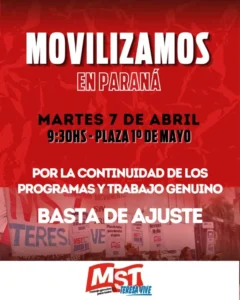 El MST Teresa Vive marchará desde la Plaza 1º de Mayo y desde allí se trasladará al Ministerio de Desarrollo Humano para pedir audiencia, reclamar