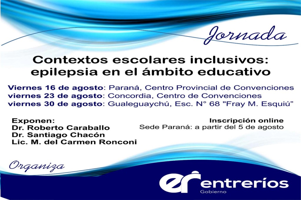 En el marco de las jornadas Contextos escolares inclusivos: epilepsia en el ámbito educativo, este lunes abre la inscripción para la sede Concordia, la que se realizará en el Centro de Convenciones el 23 de agosto.