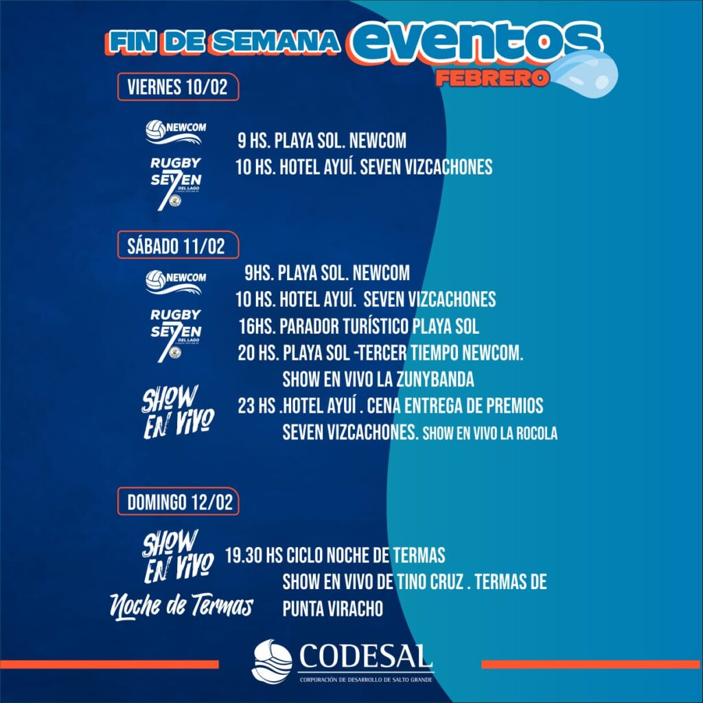El viernes iniciaron las actividades del torneo de Newcom en Playa Sol y del XIX Seven Classic del lago en el Hotel Ayuí y continuarán durante todo el sábado, hasta con shows en vivo de la Zunyband en el 3er tiempo del Newcom y La Rockola en la entrega de premios del Seven.