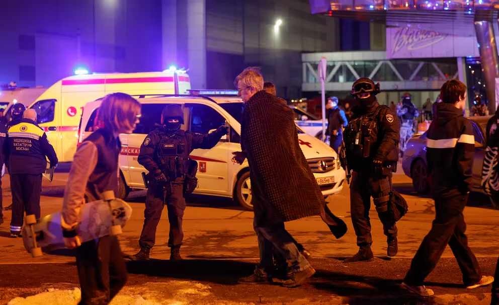 Una explosión y un tiroteo tuvieron lugar este viernes en la sala de conciertos Crocus City Hall, en Krasnogorsk, a las afueras de la capital de Rusia, Moscú, que, según el balance provisorio, dejaron al menos 40 muertos y más de 100 heridos. Entre ellos, unos 20 fueron hospitalizados, cinco en estado grave. Videos compartidos en redes sociales muestran a la gente que estaba disfrutando de un show del grupo Piknik huyendo del salón, así como una densa nube de humo negro saliendo del sitio y se reportó también el colapso del techo del sitio. Inclusive, la agencia TASS dijo que un tercio del edificio está en llamas.