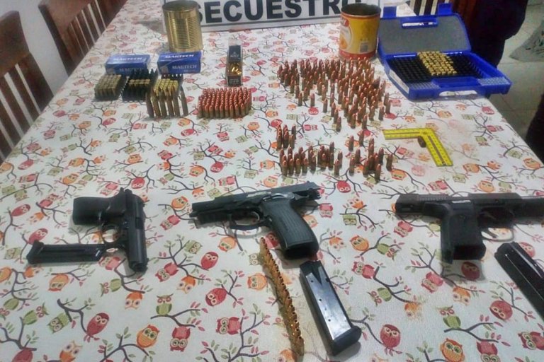 El accionar policial fue positivo y se procedió al secuestro de tres armas de fuego – calibres 22, 45 y 9 mm – con cartuchería calibre 9 mm, 7,62 mm, 22 mm y 45 mm.