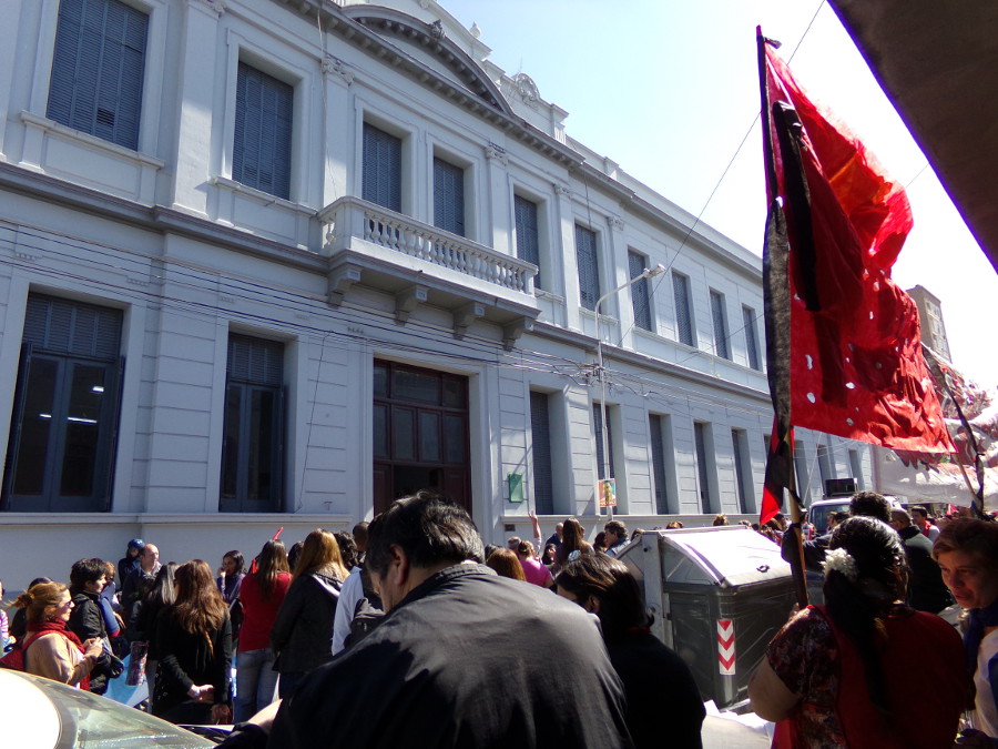 “Olé olé, olé olá; vení Urribarri, vení mirá, esta es la escuela que no querés arreglar”, decía uno de los cantos que retumbaban en las calles mientras la importante columna de docentes —acompañados por padres y alumnos de diferentes escuelas, con carteles que exponían el decadente estado de los colegios— recorrió las arterías de la ciudad hasta al edificio del histórico colegio en el que concluyó la protesta.