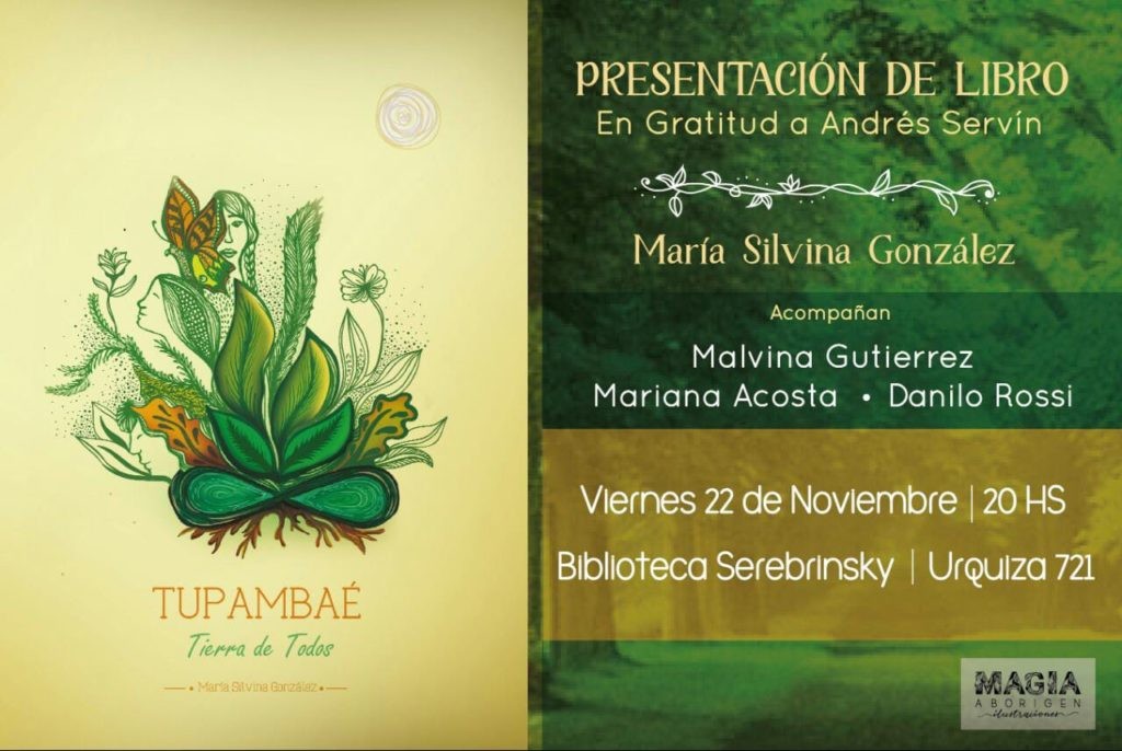 Silvina González acompañada por Malvina Gutierrez, Mariana Acosta y Danilo Rossi, presentará el libro TUPAMBAÉ (Tierra de Todos), en gratitud a Andrés Cervín.