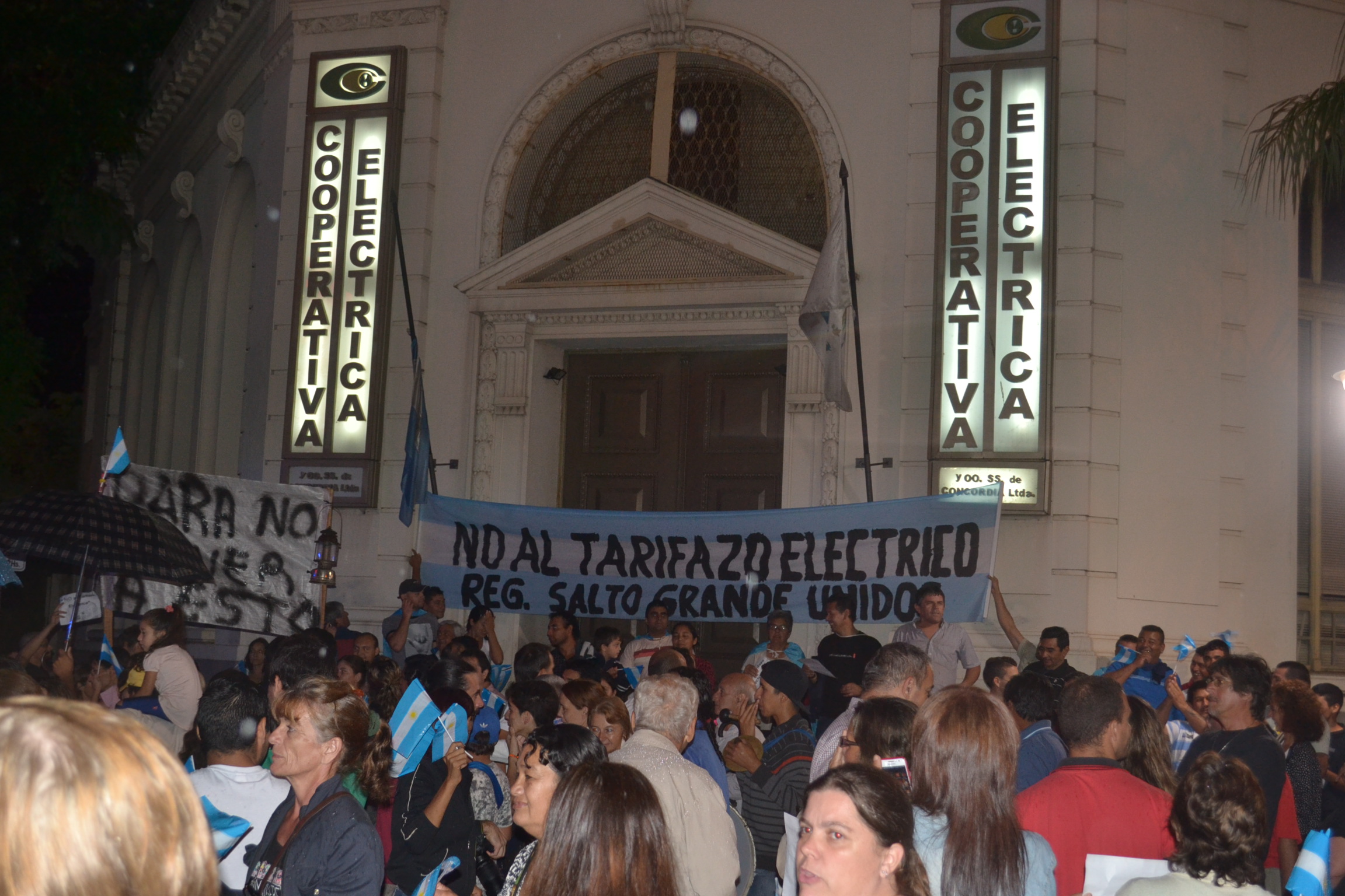 Pese a la lluvia, se realizó la movilización contra el aumento de tarifas en la energía eléctrica, a partir de las 20 hs. Los manifestantes se concentraron en plaza Urquiza y marcharon hacia plaza 25 de Mayo. Al rodear a la plaza principal de la ciudad, se detuvieron frente a la Cooperativa Eléctrica donde realizaron un momentáneo corte de calle. Luego, al llegar a la Municipalidad fueron recibidos por el intendente Enrique Cresto.