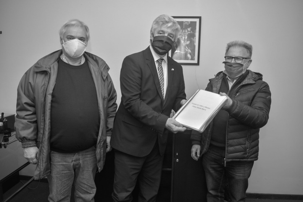 El presidente de la Comisión Administradora para el Fondo Especial de Salto Grande, Luis Benedetto, junto al vocal del organismo, Eduardo Mozetic, hicieron entrega del proyecto que persigue la puesta en valor de una de las propiedades más antiguas de la localidad de Aldea Santa María, en el departamento Paraná, destinada a convertirse en Museo Religioso.