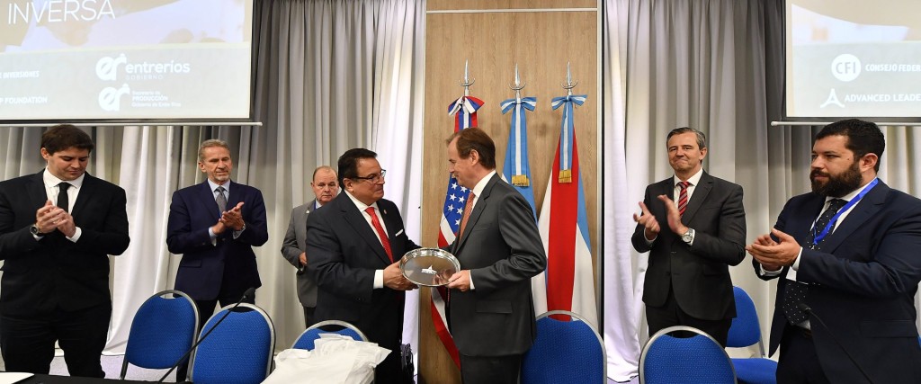 Agradeció a las autoridades, funcionarios y empresarios presentes y en especial al gobernador Gustavo Bordet «por todo el apoyo que ha brindado desde hace meses para sacar adelante este proyecto apostando no solamente por la provincia de Entre Ríos sino también por su potencial y generando lazos inmediatos y a largo plazo para el sector privado entrerriano con los Estados Unidos».