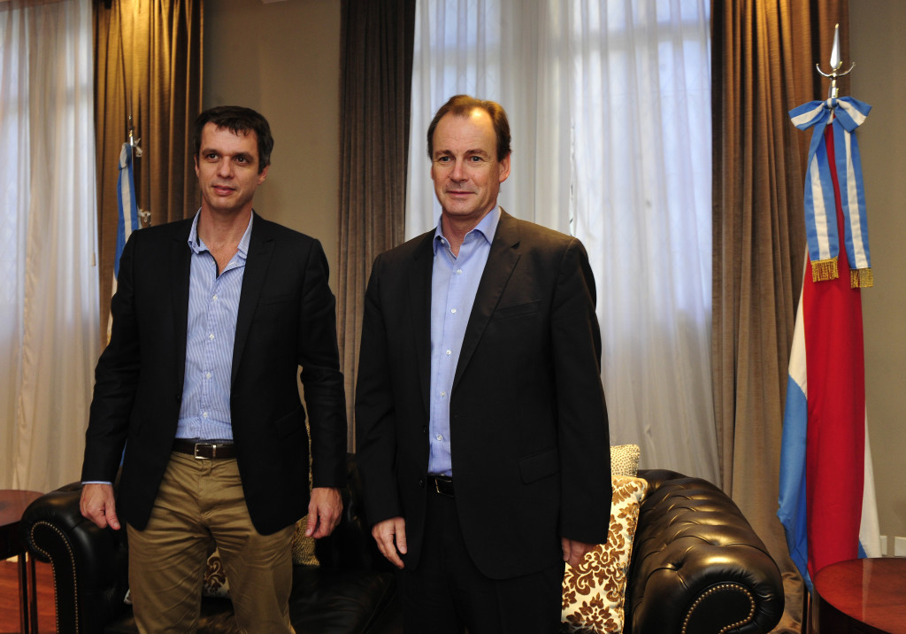 Bordet_Cresto_El gobernador Gustavo Bordet consideró con el intendente de Concordia, Enrique Cresto, un mecanismo ante la eliminación del Fondo de la Soja. Las obras del aeropuerto internacional y el relleno sanitario en el Campo El Abasto, también en la agenda de un encuentro que se desarrolló en la Casa de Entre Ríos, en Buenos Aires.