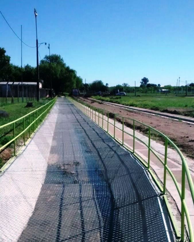 Además se incorporaron, como obras complementarias, veredas y cordones cuneta a ambos lados de la calle existente, una losa-puente de 3,50 metros por 4 metros para permitir el tránsito vehicular hacia la zona de los sanitarios, un sedimentador para facilitar las tareas de limpieza del canal, y una baranda de seguridad a ambos lados de la traza del canal, que corre contiguo a la cancha de fútbol principal del Club Rivadavia.