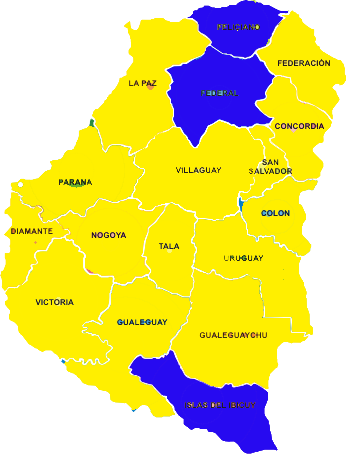 mapaSUPERÓ CON EL 52,97 POR CIENTO AL 37,98 QUE OBTUVO EL FRENTE SOMOS ENTRE RÍOS