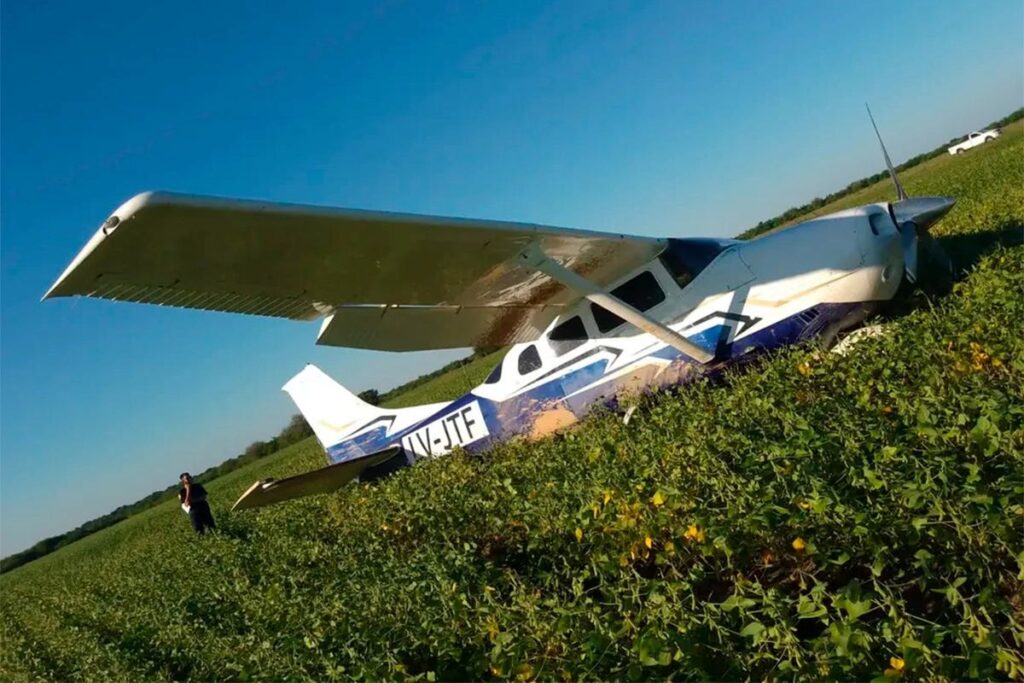 Desde la Jefatura Departamental, al llegar al lugar, los efectivos encontraron una aeronave marca Cessna (presumiblemente 206 Stationair o Cessna 210 Centurion) de color blanco con detalles en azul, con la matrícula argentina falsa LV-JTF y debajo de ésta CP-846, correspondiente a la nomenclatura boliviana. El avión no tenía ocupantes y presentaba daños en el tren de aterrizaje del lado izquierdo. En su interior, se hallaron bidones con posible combustible, cajas de alfajores y botellas de vino.