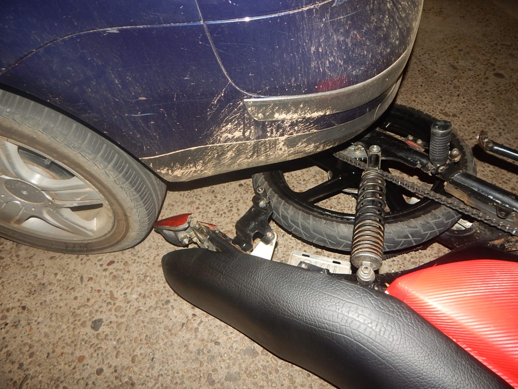 Una moto y un Renault Clío chocaron en la avenida Costanera ayer alrededor de las 3 y media de la madrugada.