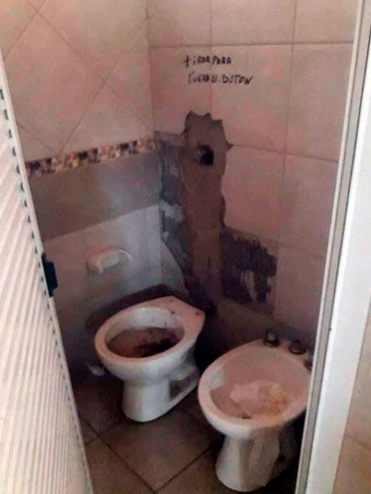 No es difícil imaginar lo que sintieron los visitantes que optaron por ir a pasar el día allí y cuáles fueron las “alternativas” a las que apelaron para atender a sus necesidades fisiológicas. En el cerrado baño de mujeres, habían improvisado unas maderas para ocultar un diminuto espacio donde algunos defecaron. Tanto el olfato como la vista se anoticiaban de esto al aproximarse a los sanitarios.
