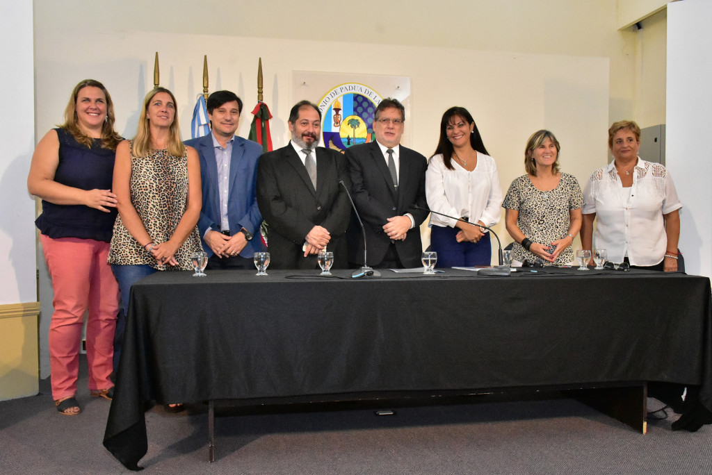 El intendente Alfredo Francolini, junto al presidente del Concejo Deliberante Daniel Cedro, la asesora institucional del Ejecutivo María de los Ángeles Petit, y las concejalas Claudia Villalba, Cristina Guitar y Alicia Estela Maldonado, dieron a conocer el proyecto que será tratado por el cuerpo deliberativo local. Acompañaron la presentación el secretario de Coordinación de Gestión Fernando Barboza y la secretaria de Desarrollo Urbano Mireya López Bernis, entre otros.