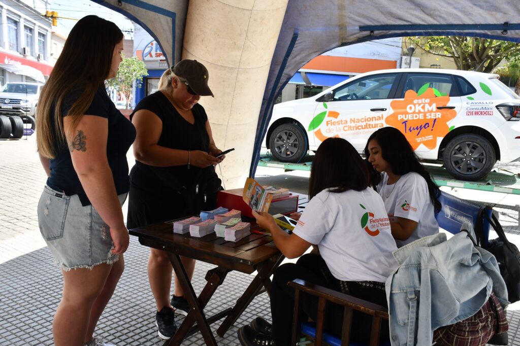 Comenzó este miércoles la venta del bono contribución, entradas generales y sillas para la 47º Fiesta Nacional de la Citricultura, que se llevará a cabo en el predio del Parque Central “Viñedos Moulins” durante el fin de semana del 5, 6 y 7 de diciembre, con las presentaciones de Ángela Leiva, Márama, Uriel Lozano, artistas locales, emprendedores, artesanos y un amplio patio gastronómico con food trucks, además de la Expo Citrus y elección de soberanas.