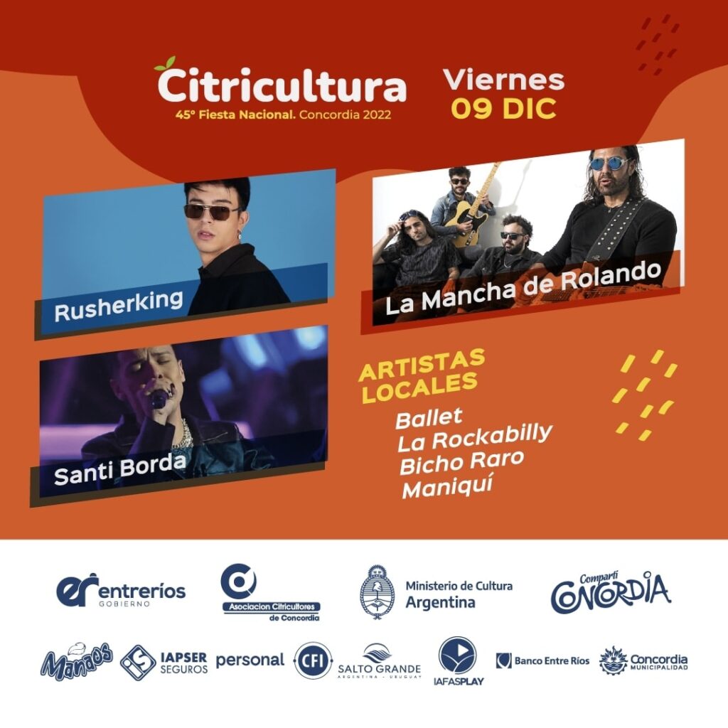 Este viernes 9 de diciembre comienza la 45° Fiesta Nacional de la Citricultura, con eje en la potencialidad del sector productivo y una atractiva grilla de espectáculos. El programa de esta nueva edición se extiende desde el viernes por la tarde hasta las últimas horas del domingo 10 de diciembre, con diversas actividades y propuestas para toda la familia.