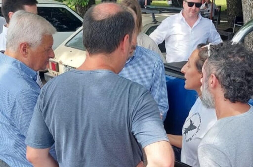 «Pasaron las horas hasta que se confirmó que debido a la presencia de los docentes, el Gobernador no asistiría a la actividad prevista y para la cual estaban convocados los distintos medios de prensa de la ciudad», indicó el gremio. Ante esta situación la secretaria general de Agmer Uruguay, Lia Fimpel, acompañada por otros integrantes de comisión directiva departamental se hicieron presente en una parrilla donde se supo que iba a almorzar el gobernador, acompañado por miembros de su comitiva y el Intendente José Lauritto.