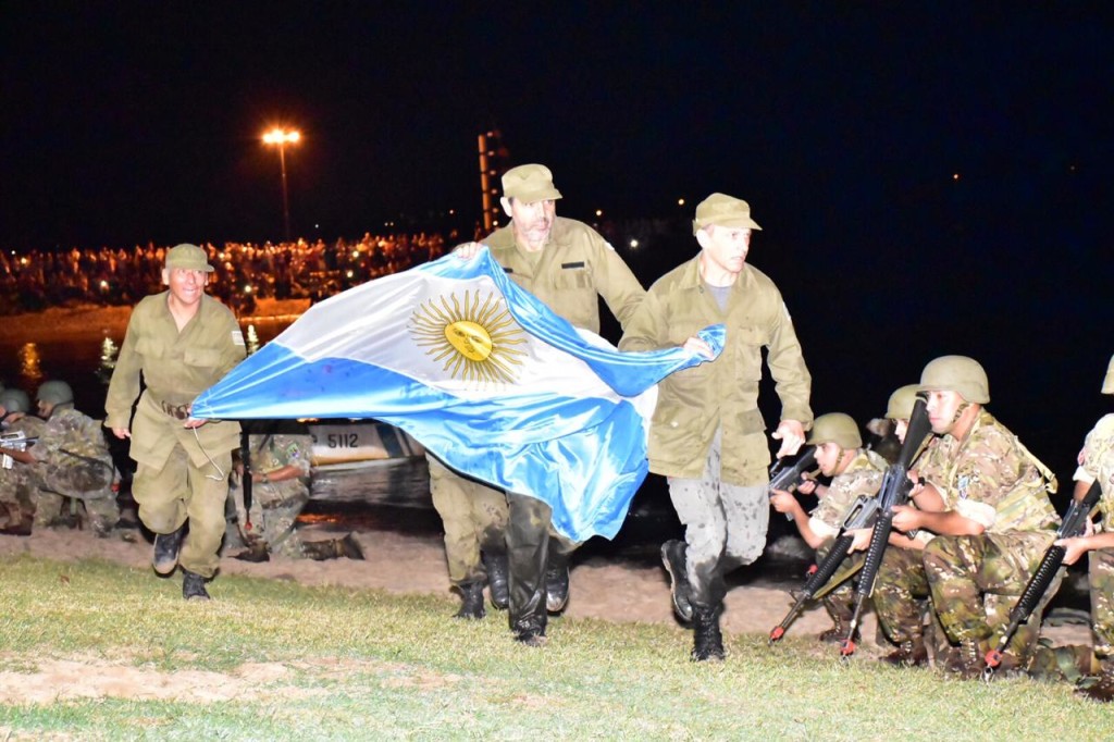 El momento más esperado llegó con la recreación del Desembarco, que fue atentamente seguido por miles de concordienses que se congregaron en la zona del espigón 2. El izamiento de la bandera celeste y blanca despertó el aplauso sostenido de todos los presentes. A medianoche en punto se cantó el Himno Nacional Argentino, y a continuación compartirse un chocolate patrio entre los presentes.