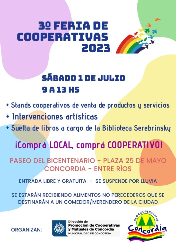 Feria del Cooperativismo, actividades artísticas, culturales y colocación de Stand, Suelta de libros a cargo de la Biblioteca «Julio Serebrinsky», Jornada solidaria: colecta de alimentos no perecederos para donar a un comedor comunitario.