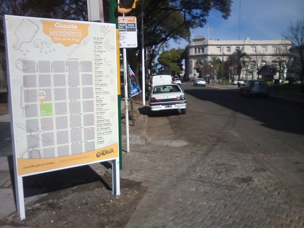 «Circuito Gastronómico Plaza 25 de Mayo» y «Circuito Gastronómico Plaza Urquiza» forman parte de la cartelería colocada en esas dos plazas del microcentro, ofreciendo toda la información de los lugares adonde el visitante o el mismo concordiense pueda ir a almorzar, cenar o tomar un café.
