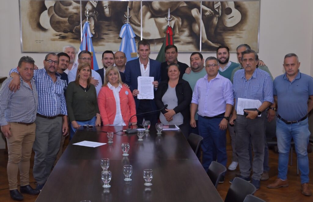En una jornada de trabajo con las organizaciones gremiales que representan a los trabajadores y trabajadoras municipales, el intendente Enrique Cresto y el secretario de Gobierno y Hacienda de la Municipalidad de Concordia, Aldo Álvarez, formalizaron un nuevo acuerdo de paritarias que permitirá instrumentar un incremento de un 15% en los sueldos, llevando el porcentual anual de aumentos al 119,87% y ubicando los salarios municipales en 16,7 puntos por arriba de los valores inflacionarios difundidos por el INDEC.