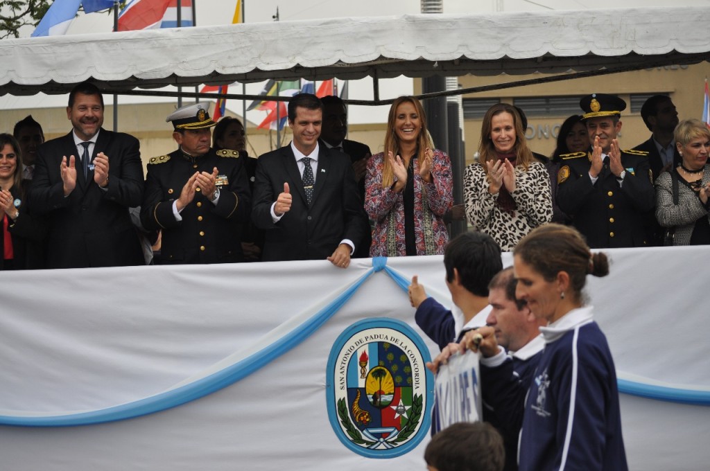 En el Palco de Autoridades, junto al intendente estuvieron presentes el viceintendente y presidente del Concejo Deliberante Armando Gay, el Presidente de CTM Roberto Niez, el Diputado Provincial Joaquín La Madrid, el Secretario de Relaciones Públicas de la Intendencia de Salto (ROU), Alejandro Bermúdez, en representación del intendente Andrés Lima, el ex intendente Juan Carlos Cresto, la Directora Ejecutiva del Instituto Becario Mayda Cresto, el Padre Daniel Petelín, concejales de la ciudad, funcionarios municipales y provinciales, el Teniente Coronel Francisco Cajal, Jefe del Regimiento de Caballería Tanques 6 Blandengues, el Jefe Departamental de la Policía de Entre Ríos, Comisario Mayor Marcelo Darío Den Dauw, autoridades de las distintas fuerzas de seguridad, entre otros.