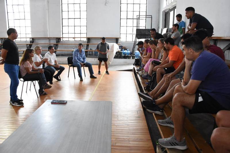 Este lunes tuvo lugar un encuentro de trabajo entre el secretario de Desarrollo Humano Sebastián Arístide y la subsecretaria de Deportes Ivana Pérez con los docentes que desde hace varios años se encuentran en condición de monotributistas.