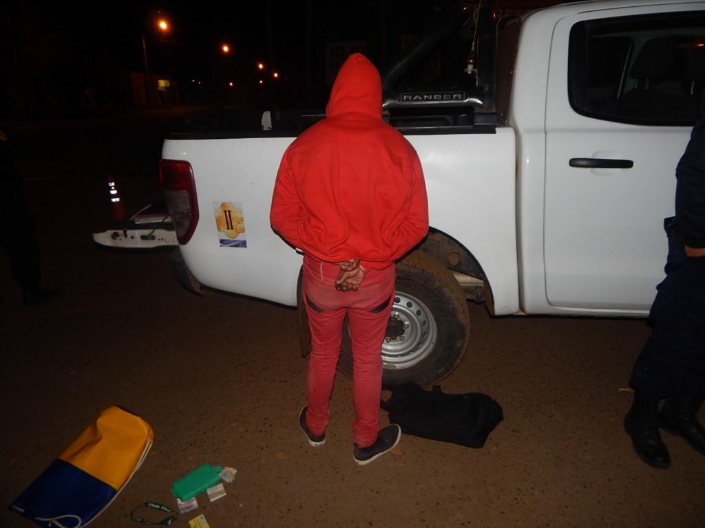 El joven de 21 años se movilizaba en una moto 150 cc. Llevando un bolso, en cuyo interior se halló (un pan compacto) un paquete con Marihuana. Ante esta situación se le dio intervención al personal de la delegacía de Toxicología, quien procede al secuestro de la sustancia, como así también de una balanza digital y otros efectos que estaban en poder de este joven que fue aprehendido por la Policía. En el lugar del procedimiento también se secuestró la moto marca Corven en el cual se movilizaba. El aprehendido fue trasladado a dependencias policiales y puesto a disposición de la justicia Federal.