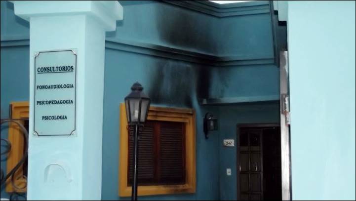 Efectivos de la policía local, con conocimiento de la Fiscal en Turno Eugenia Molina, trabajaron durante toda la jornada del sábado para determinar quien o quienes habían sido los autores del ataque, con botellas molotov, perpetrado en la madrugada de este sábado sobre el frente de la vivienda en la que habita el presidente municipal Felipe Torres y su esposa.