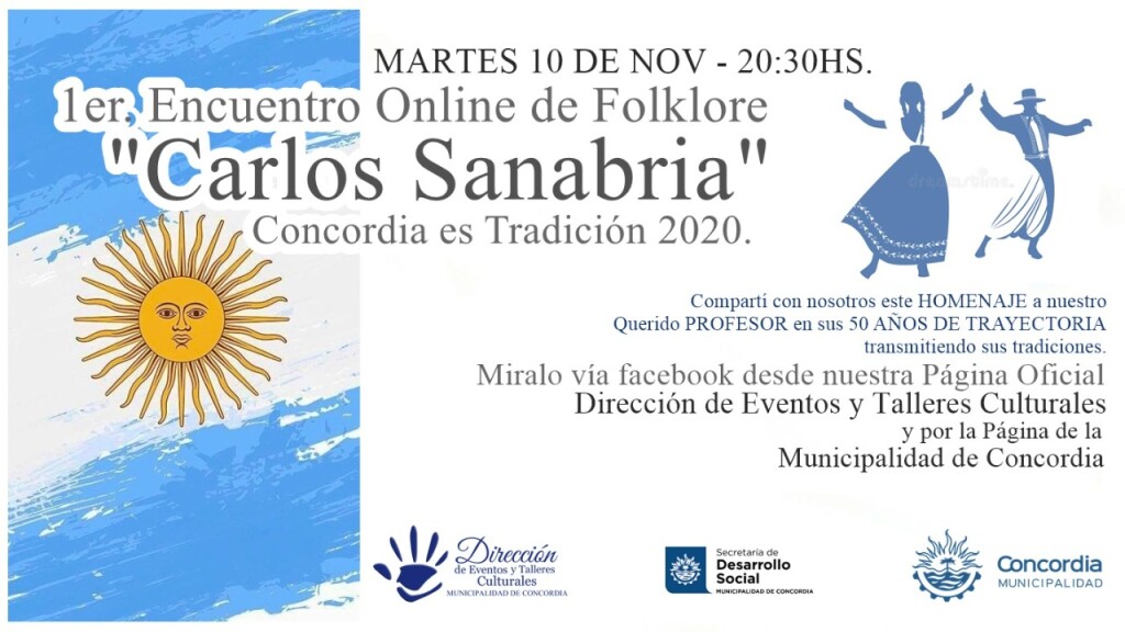 Este martes 10 de noviembre, Día de la Tradición, la Dirección de Eventos Culturales y Talleres Barriales de la Secretaría de Desarrollo Social de la Municipalidad realizará un evento virtual a través de las redes sociales, para celebrar la fecha. El encuentro virtual, del que participarán diferentes artistas de distintas disciplinas, lleva el nombre de «Carlos Sanabria», en homenaje a los 50 años de trayectoria y labor permanente por la difusión de nuestras tradiciones y nuestra cultura.