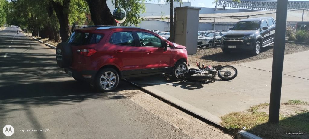 De acuerdo a lo que informó a Concordia Policiales, el automóvil venía circulando en sentido sur-norte y se encontraba parado en el carril este de Eva Perón, a la espera para ingresar hacia el local de RUDAS. Una vez que avanzó hacia la concesionaria impactó a la motocicleta que se dirigía en dirección norte – sur.