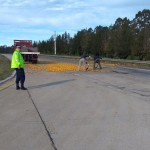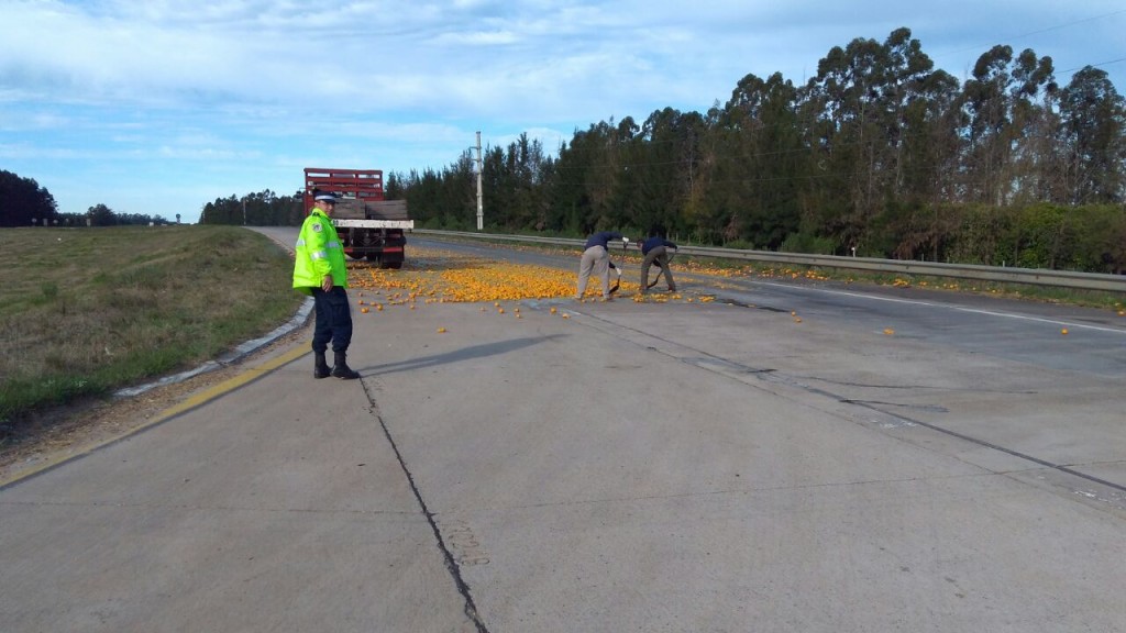 Por otra parte, también personal de Comisaria La Criolla a la altura del Kilómetro Nº 286 de la Autovía General Artigas, visualizaron un camión Mercedes Benz que transportaba naranjas, perteneciente a la empresa Puro Sol, que era conducido por Germán, de 39 años de edad, con domicilio en La Criolla, por motivos que se tratan de establecer habría volcado. No habría sufrido ningún tipo de lesiones el conductor.
