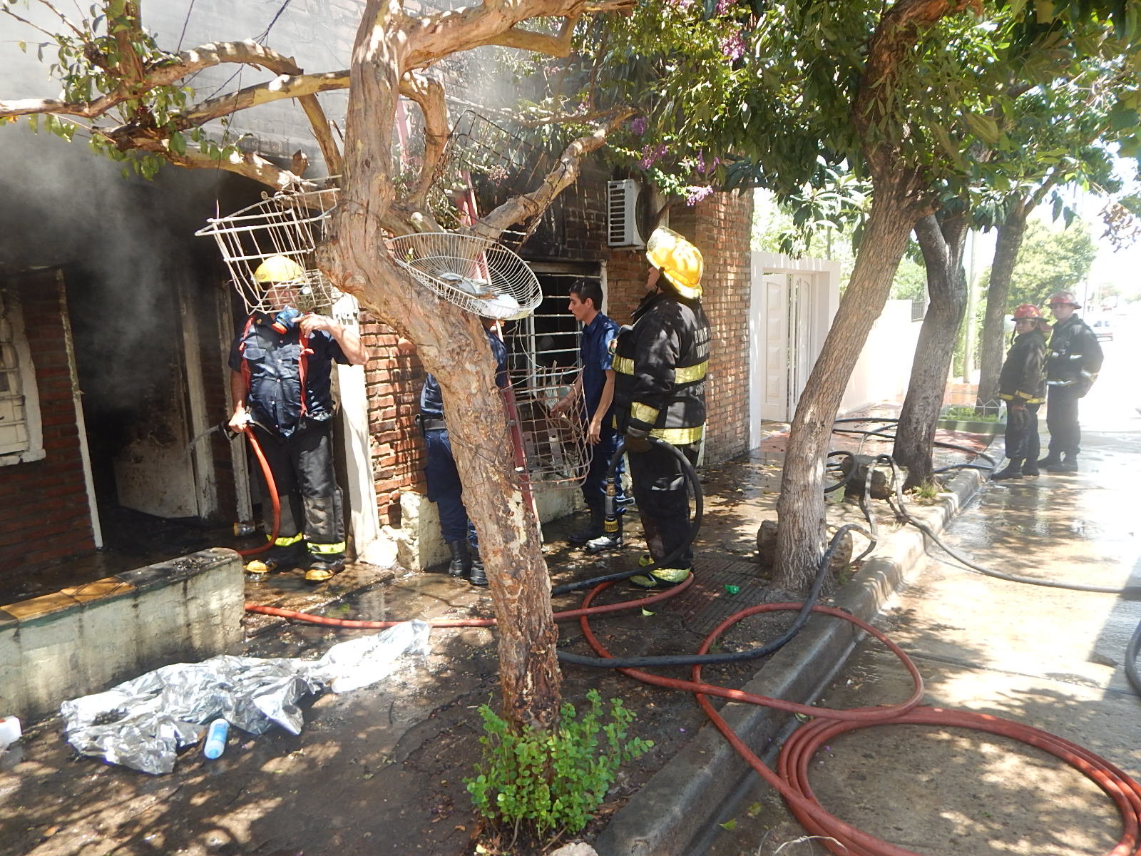 En calle Colon y Asunción se produjo un incendio que afectó la totalidad de la vivienda donde se inició y una pared de una casa lindante. Según lo manifestado por los propietarios, el foco ígneo se produjo en circunstancias que dos menores que viven en el lugar se encontraban jugando con pirotecnia.