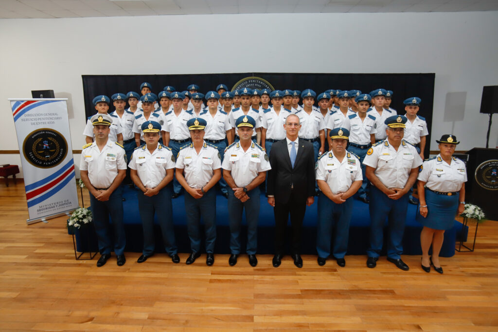 El secretario de Justicia, Martín Acevedo Miño, acompañó al director de Servicio Penitenciario (SPER), Alejandro Miotti, en el acto de egreso de 38 nuevos agentes penitenciarios, que finalizaron sus estudios en la Escuela de Agentes Sargento Adolfo Emilio Reynoso.