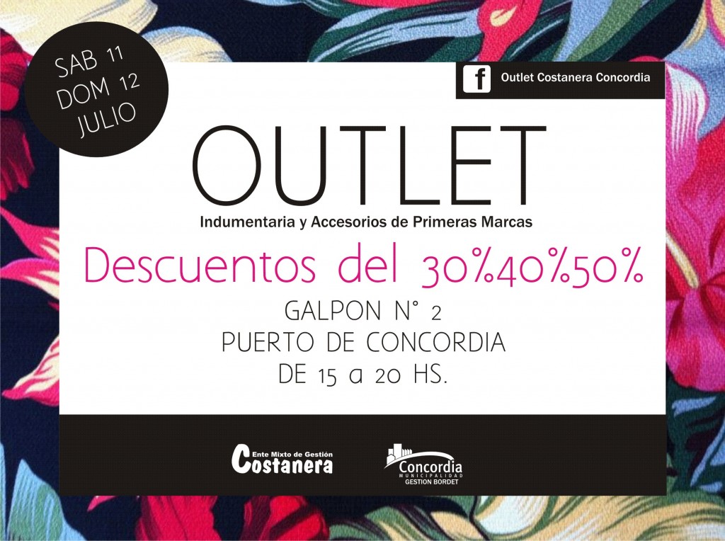 Los días 11 y 12 de Julio se realizará Espacio Outlet en el Galpón N°2 del Puerto de Concordia y contará con la participación de más de 30 locales comerciales que ofrecerán indumentaria y accesorios de primeras marcas con descuentos del 30,40 y 50%. Se abrirá a las 15.00 ambos días.