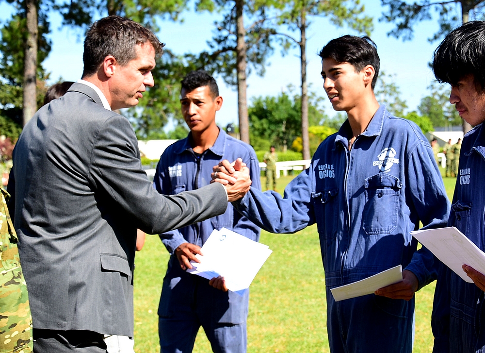 La Escuela de Oficios se materializó en la primera gestión del Intendente, a través de un convenio marco de cooperación entre el Ejército Argentino y el municipio, comenzando las primeras cursadas con 50 alumnos, incrementándose en los siguientes años el número de jóvenes, llegando a recibir más de 150 por cada edición.