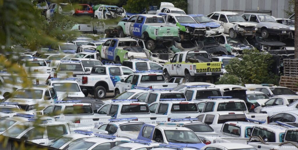 Hoy son más de 4.000 pick-ups, coches tipo sedán y utilitarios descartados por la policía porque chocaron, se fundieron o cumplieron su servicio de patrullaje. La Bonaerense es una máquina de destrozar automóviles. La vida útil promedio de un vehículo usado como transporte de policías es de 36 meses. Tres años.