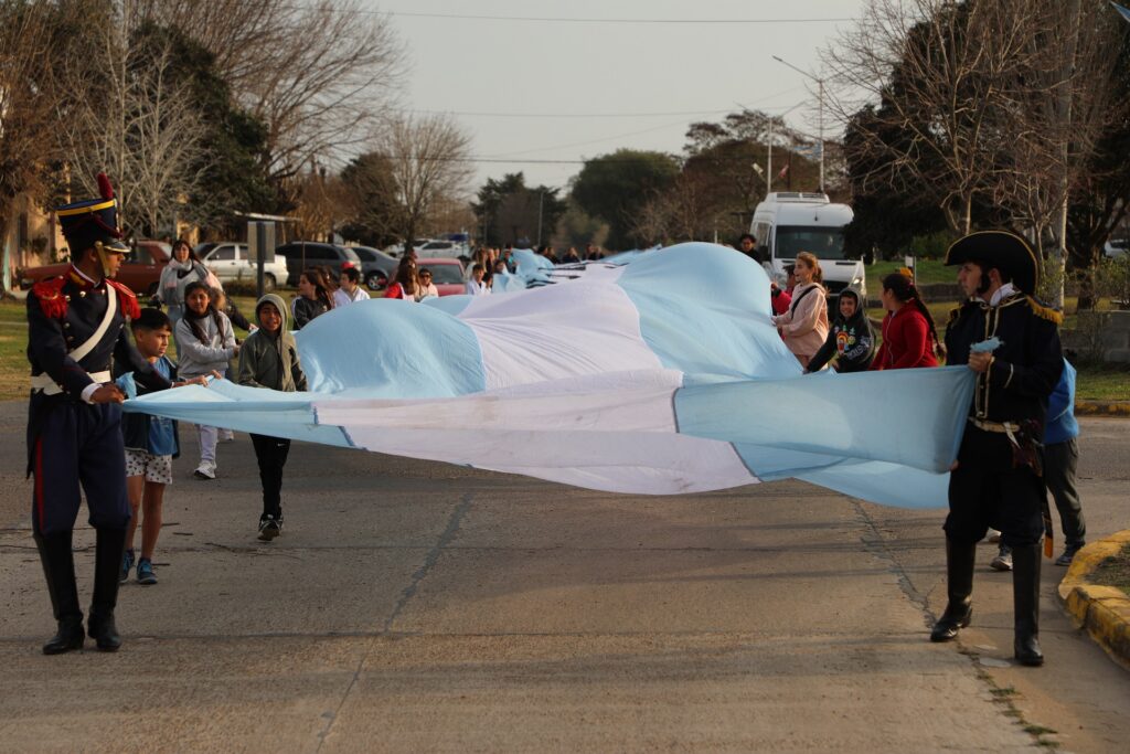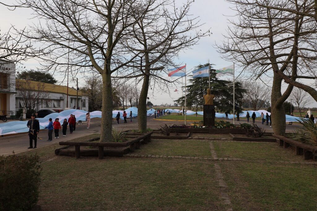El viernes, la jornada comenzó a la mañana, en el Museo Casa de Gobierno, dependiente de la Secretaría de Cultura, con una sala llena y continuó a la tarde, en Gilbert. En esta localidad, luego de la charla, la proyección y las representaciones con personajes y trajes, fueron invitados los alumnos, docentes y vecinos a desplegar una bandera argentina de 140 metros por las calles del pueblo.