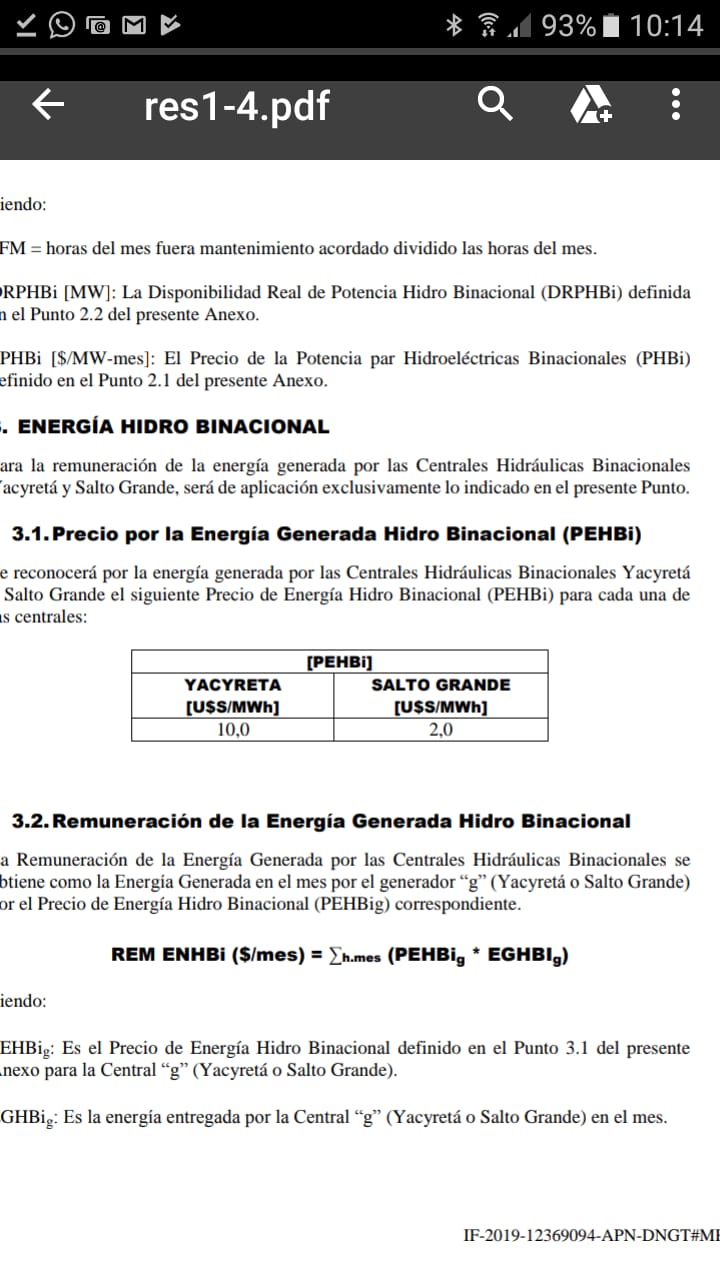 Mediante la resolución N° 1/2019 de la Secretaría de Recursos Renovables y Mercado Eléctrico, desde del 1º de marzo Yacyretá, cobrará por la energía generada 10 dólares y Salto Grande sólo 2 dólares. La norma no da ninguna justificación para la discriminación.