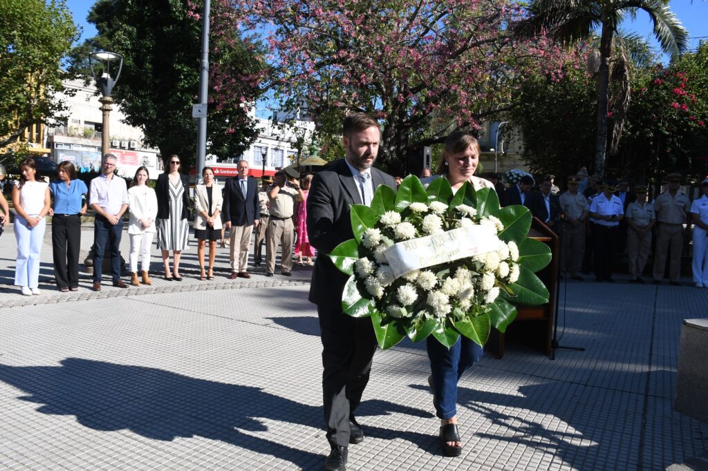 Asistieron a la jornada conmemorativa el presidente de la Delegación Argentina de CTM Embajador Alejandro Daneri; la cónsul uruguaya Fiorella Scayola; la diputada nacional Nancy Ballejos; la senadora provincial Cielo Espejo; los diputados provinciales Marcelo López y Carola Laner; funcionarios municipales; concejales; representantes de las Fuerzas Armadas y de Seguridad; veteranos de Malvinas; instituciones patrióticas y culturales; instituciones de servicio y público en general.