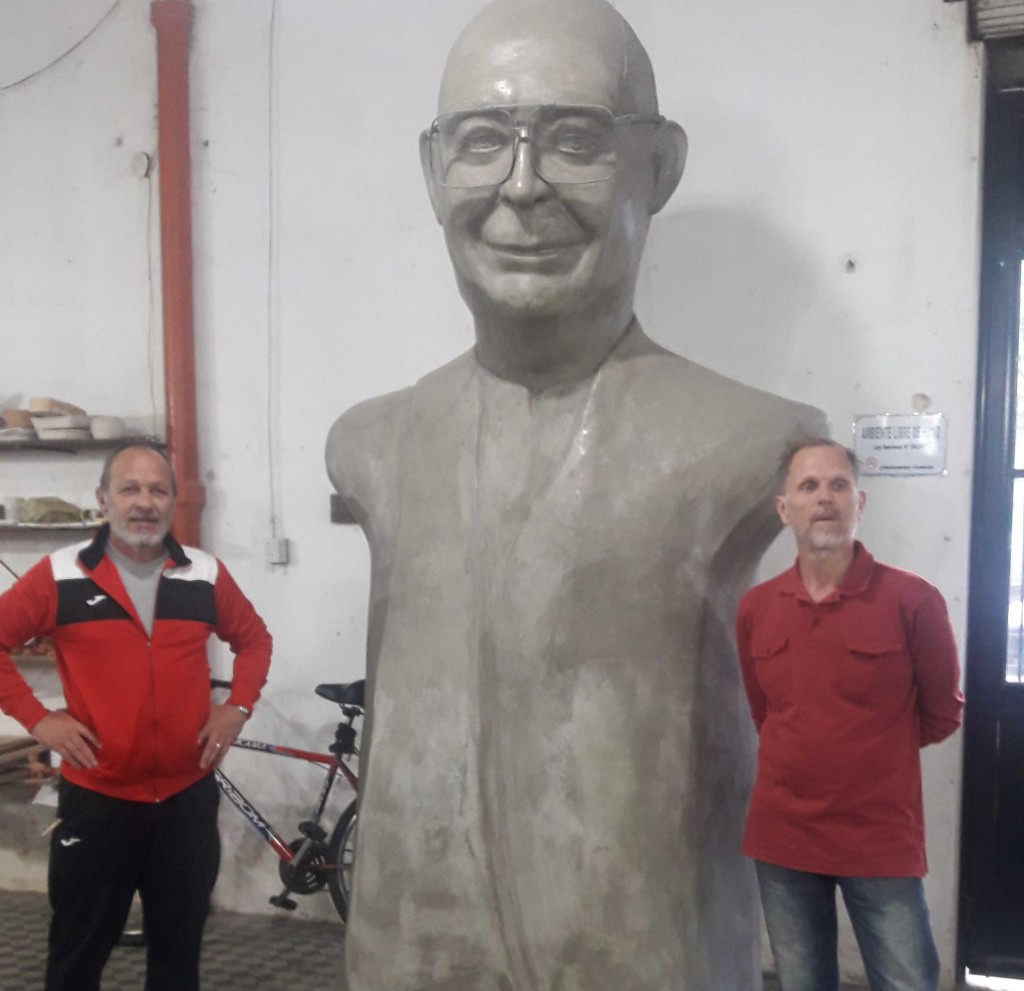 Hoy su imagen es una genial escultura, que lo refleja fielmente, construida en la Escuela Municipal de Cerámica, por Ladislao Salvini que posa junto al Subsecretario de Cultura Cesar Tisocco, a la espera de que llegue el momento de instalar su imagen en un lugar acorde junto a la Defensa Sur que impulsó, ¿o no?