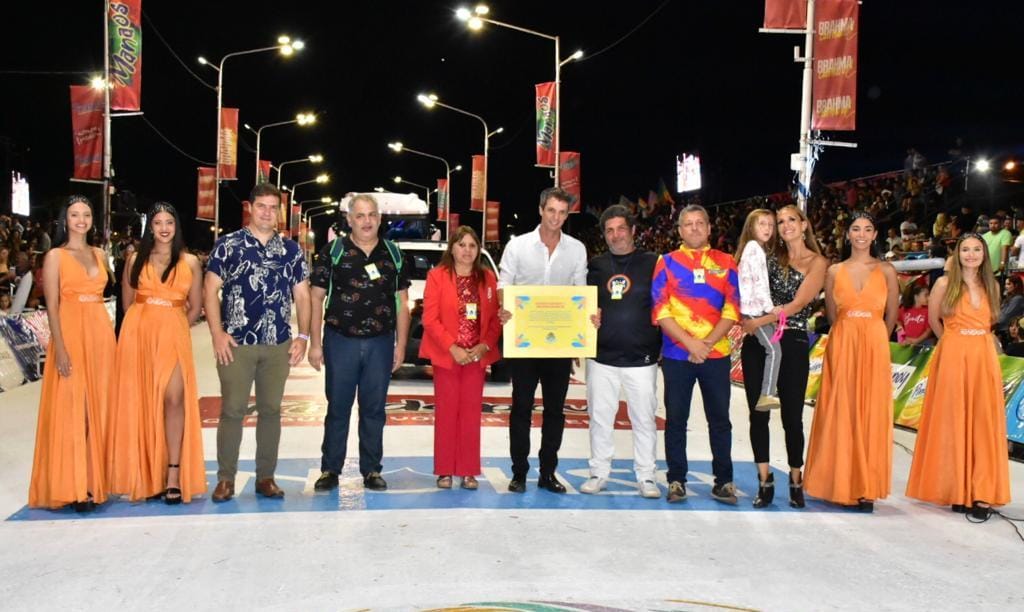 En esta noche también, las comparsas y sus integrantes formalizaron la entrega de un reconocimiento al intendente Enrique Cresto, en agradecimiento a su apoyo y compromiso con el Carnaval de Concordia.