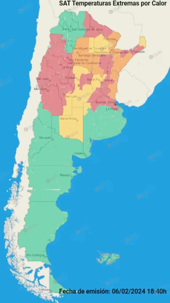 A una semana de que se desataran los calores extremos en el norte y centro del país, el Servicio Meteorológico Nacional (SMN) activó varias alertas amarillas por tormentas que afectarán a algunos sectores de las provincias de Buenos Aires, La Pampa, Río Negro, Mendoza, La Rioja, Catamarca, Salta y Jujuy. Asimismo, señalaron que, a excepción de Jujuy, Salta y Tucumán, en el resto norte y centro del país continuarán las altas temperaturas.